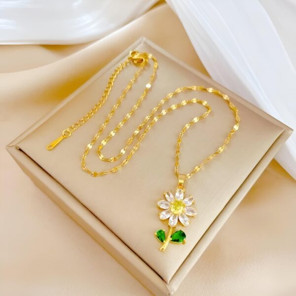 The full zirconia flower pendant adds a touch of elegance and sparkle to the necklace, making it a perfect accessory for any outfit.